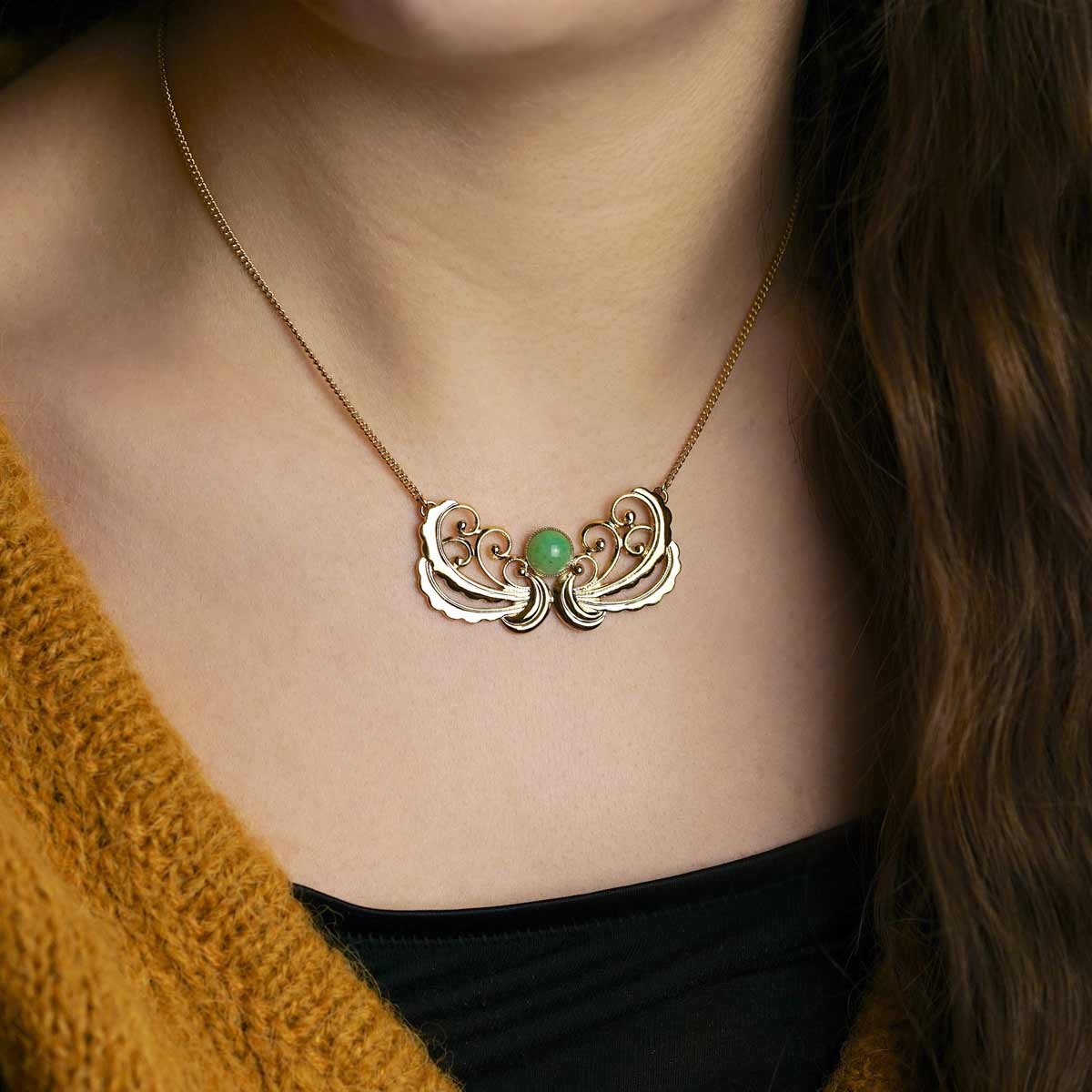 ⁄⁄ Bijou en laiton doré à l’or fin 24 carats et pierre naturelle.